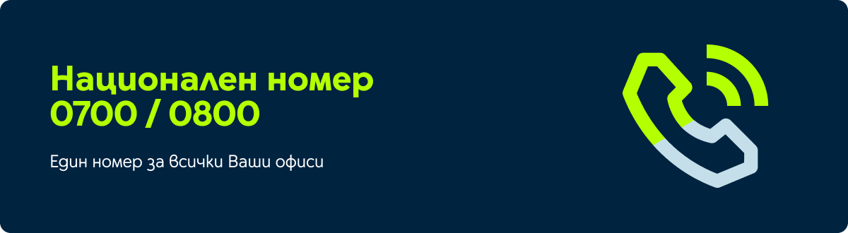 С услугите Национален номер 0700 и Национален номер 0800 можете да бъдете достъпни за всички Ваши крайни клиенти през един номер като обажданията могат да се обслужват от най-близкия Ви офис. Всички разговори до номера 0700 се тарифират на стандартна цена според използвания оператор. Вие определяте към кой от офисите Ви да бъде насочено повикването.