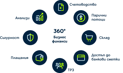Онлайн софтуер, който осигурява 360° мониторинг и управление на финансите във Вашия бизнес. Платформата разполага с модули за фактуриране, счетоводство, ТРЗ, склад и други.