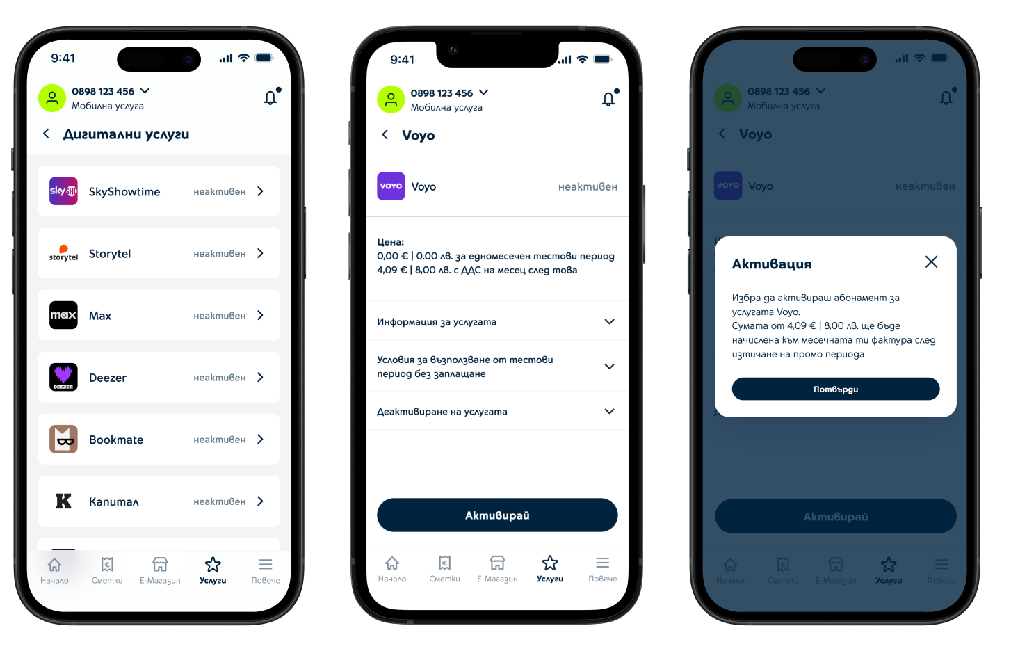 Активирай услугата като допълнителен пакет или в позиция през секция "Дигитални услуги".