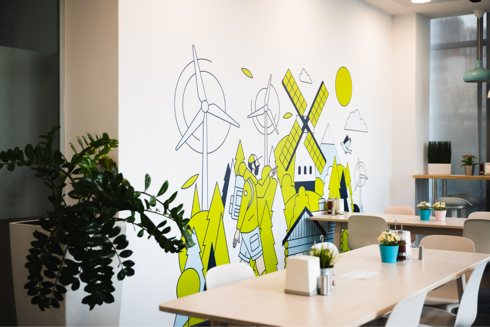 • Creative Room - Всяко крило си има по една стая, чиито атмосфера и интериор предразполагат събирането на екипи и обменянето на идеи. Всеки може да се излегне удобно на някой пуф, да се раздвижи на финес топка или да нарисува идеята си на стената.