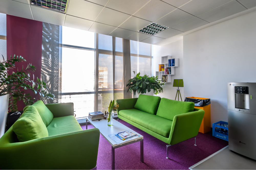 • Социални зони - Всяко крило си има зона, в която може да хапнеш, да си направиш кафе или да почерпиш за рождения си ден. В тези зони има и удобни диванчета, много цветя, малка библиотека както · и телевизор, на който да се насладиш на най-новата услуга на компанията – Yettel TV.