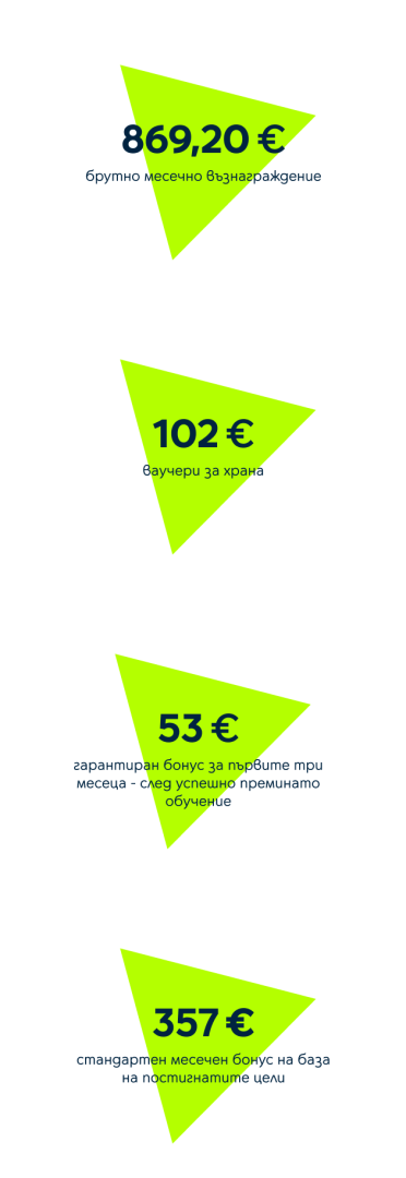 Започни от нулата и стигни до върха. Всяка крачка тук е шанс за израстване: ще развиеш умения в обслужването на клиенти, ще станеш по-уверен в комуникацията и ще се учиш от реалния опит на екипа.