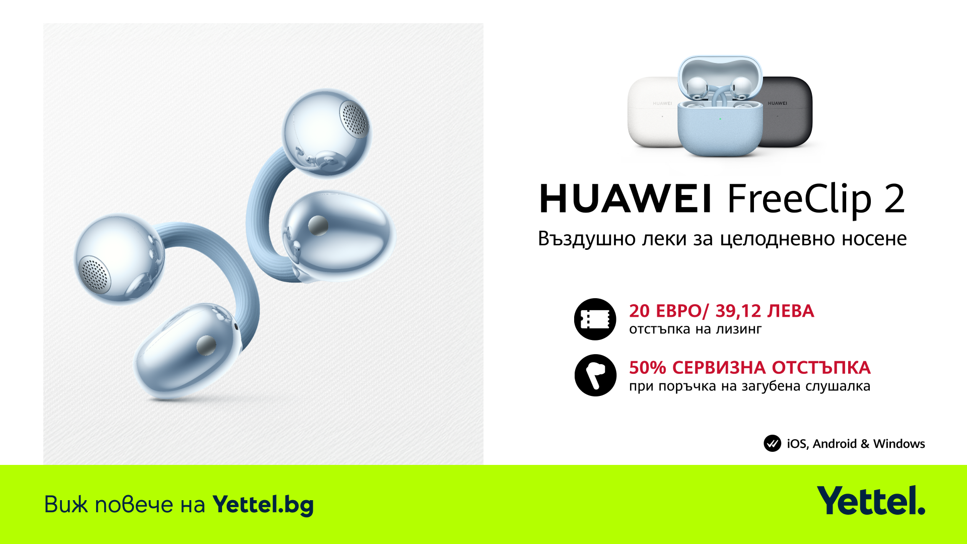 ● За HUAWEI FreeClip 2 са предвидени ценова отстъпка и преференциални сервизни условия в рамките на кампанията