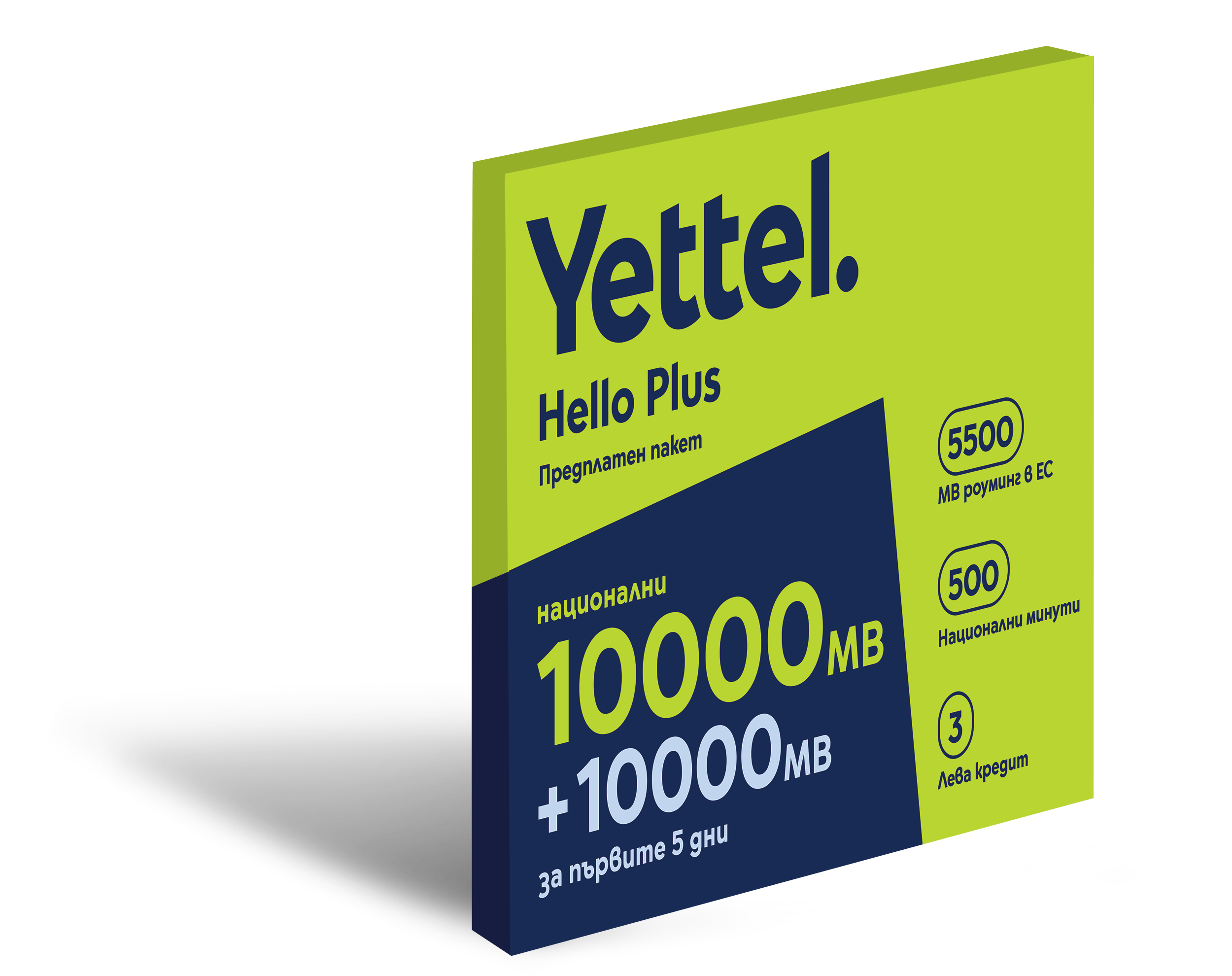 • 10000 MB мобилен интернет на максимално достижима скорост в 2G/3G/4G/LTE мрежата на Yettel в България;