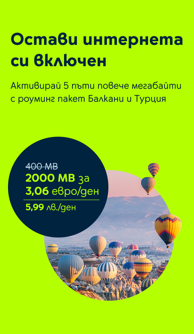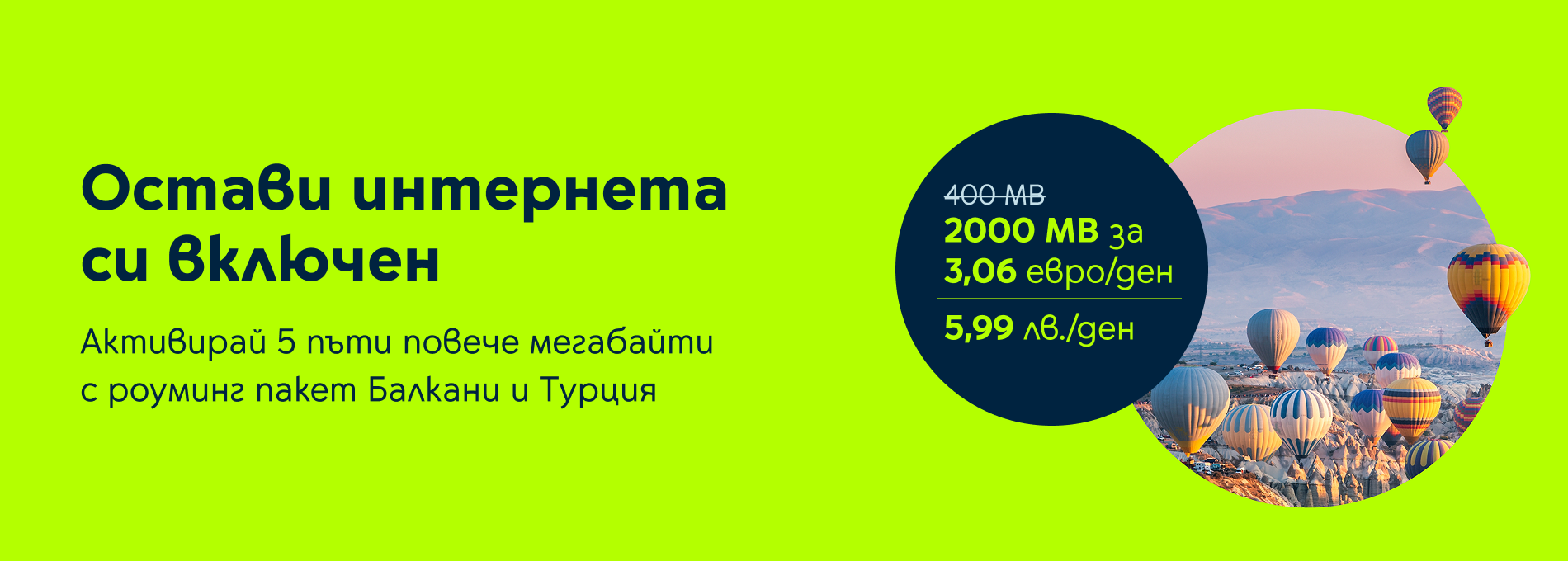 Сърфирай спокойно на изгодни цени с дневен роуминг пакет Balkans & Turkey тук.