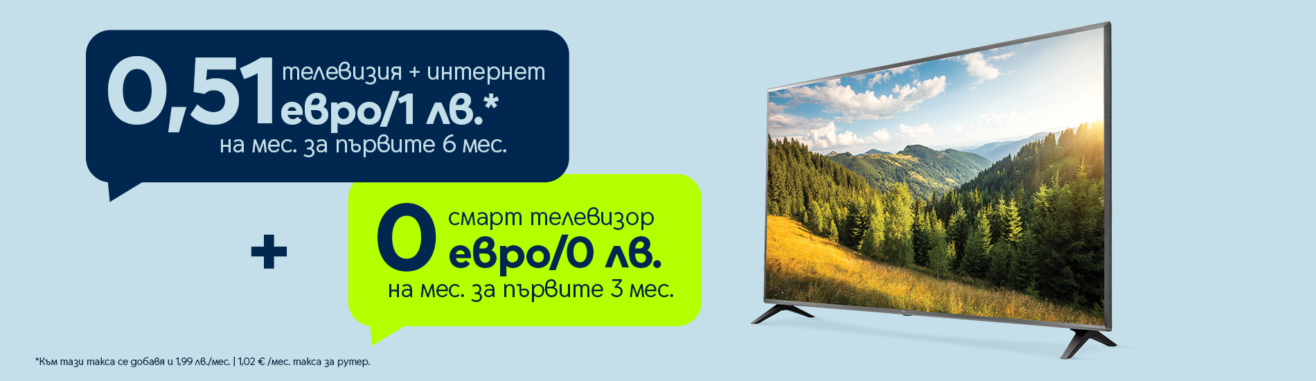 *Към тази такса се добавя и 1.02 € / 1.99 лв. на месец такса за интернет устройство
