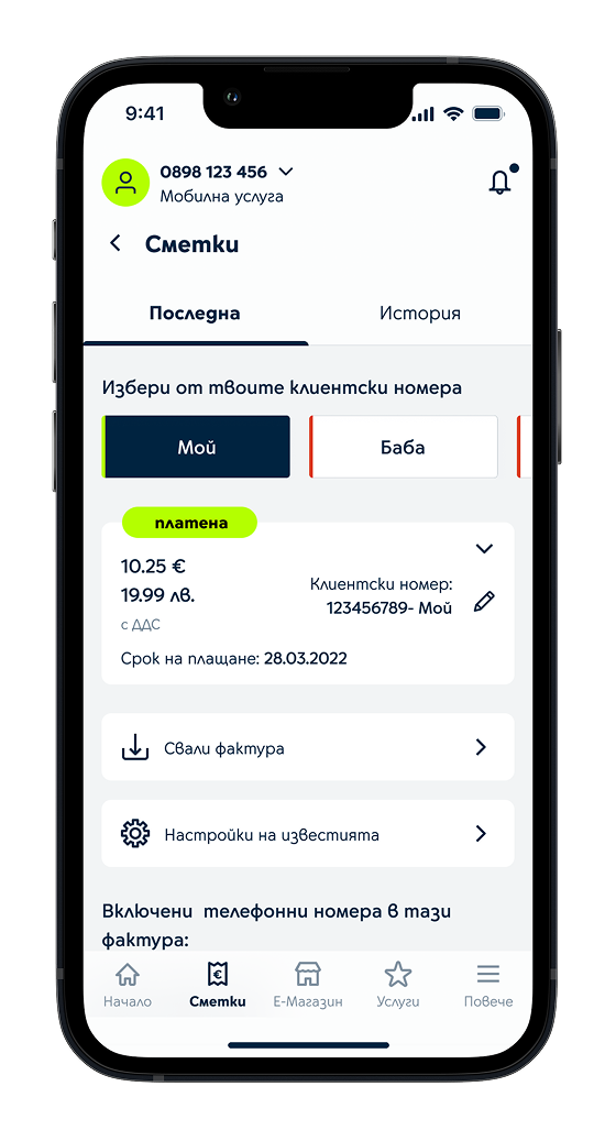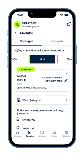 Разгледай своята фактура и виж какви елементи формират месечната ти сметка - абонаментен план, допълнителни пакети, допълнителни и други услуги, отстъпки, общо дължима сума. За да си винаги наясно: