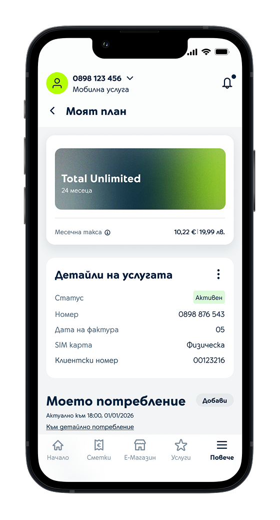 Намери информацията за твоя мобилен план и месечен абонамент на едно място: