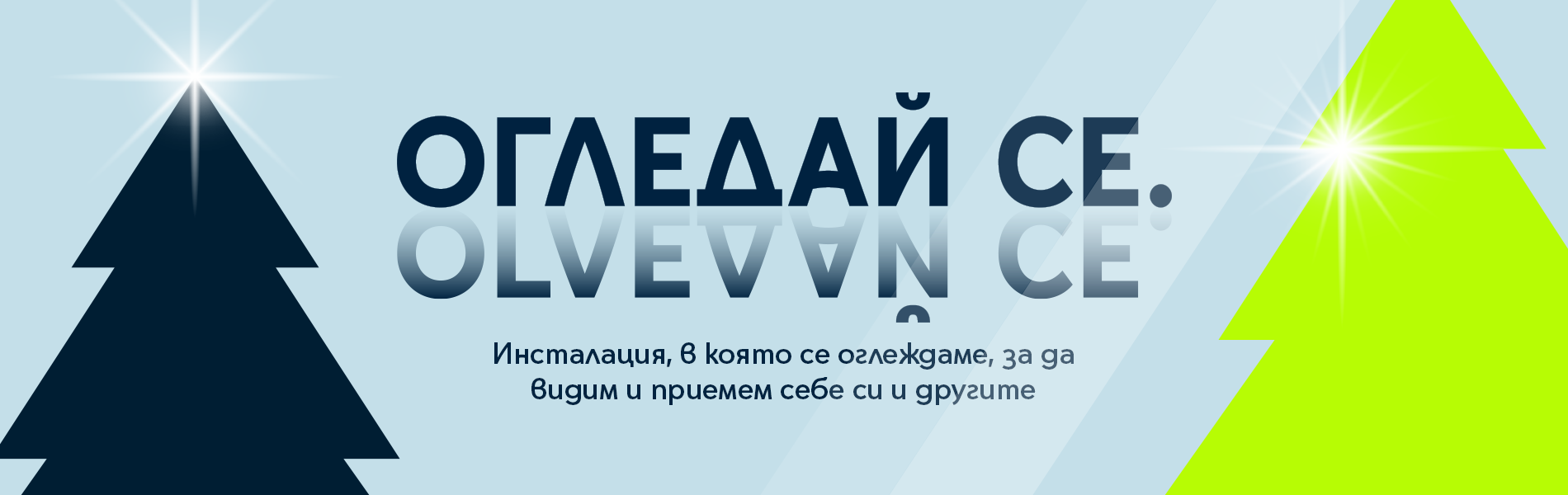 Инсталацията „Огледай се“ изобразява четирите страни на елха. Всяка от тях представлява огледална повърхност. Огледаш ли се в нея, виждаш себе си, но и човека до теб. А вглеждането в другия може да прерасне в диалог, изслушване, приемане и дори опит за разбиране – все форми на толерантността, от която се нуждаем днес.