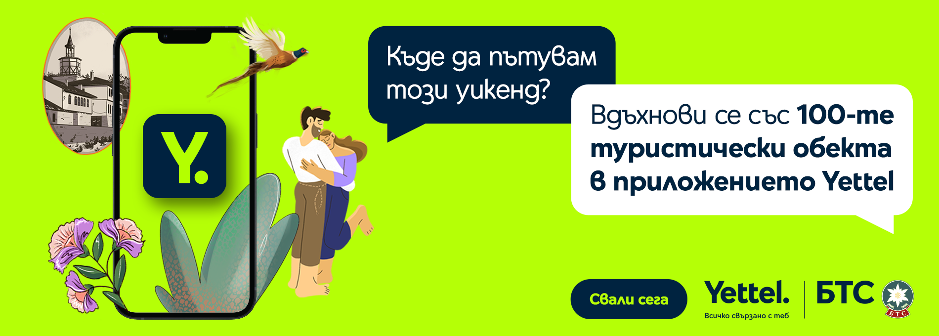 С помощта на талантливи илюстратори създадихме красиви анимирани видеа с интересни факти за някои от най-впечатляващите обекти от културното-историческото или природното богатсво на България. Гледай ги в приложението на Yettel в секцията за 100-те национални туристически обекта