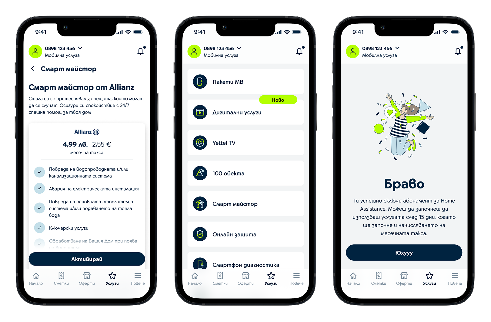 *Клиенти, които нямат абонамент за мобилен номер за гласова услуга, могат да се абонират за „Смарт майстор“ само присъствено, в магазините на Yettel.