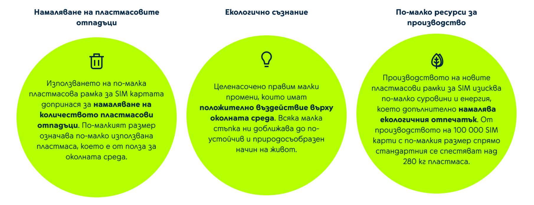 Новите SIM карти са с по-компактна пластмасова рамка, което означава по-малко остатъчен материал и по-малко пластмасови отпадъци.