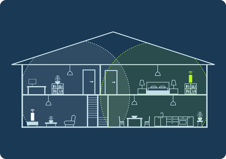 Можеш да използваш Mesh устройства, за да подобриш покритието на Wi-Fi мрежата си. Следвай инструкциите за настройка.